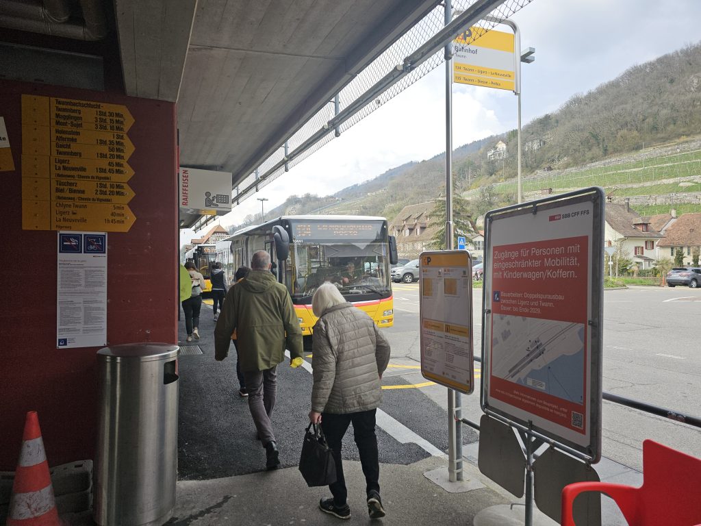 Reisende von Biel – Twann nach Ligerz (und umgekehrt) benutzen den Regionalzug der SBB bis La Neuveville und steigen dort auf die Ersatzverbindung der PostAuto-Linie 21.134 nach Schafis und Ligerz um. Der Fahrplan ist entsprechend angepasst und auf die Ankunfts- sowie Abfahrtszeiten der Regionalzüge von / nach Biel/Bienne ausgerichtet. Die üblichen Fahrausweise für die Strecke Twann – Ligerz bleiben gültig, der zusätzliche Umweg muss von den Fahrgästen nicht bezahlt werden.