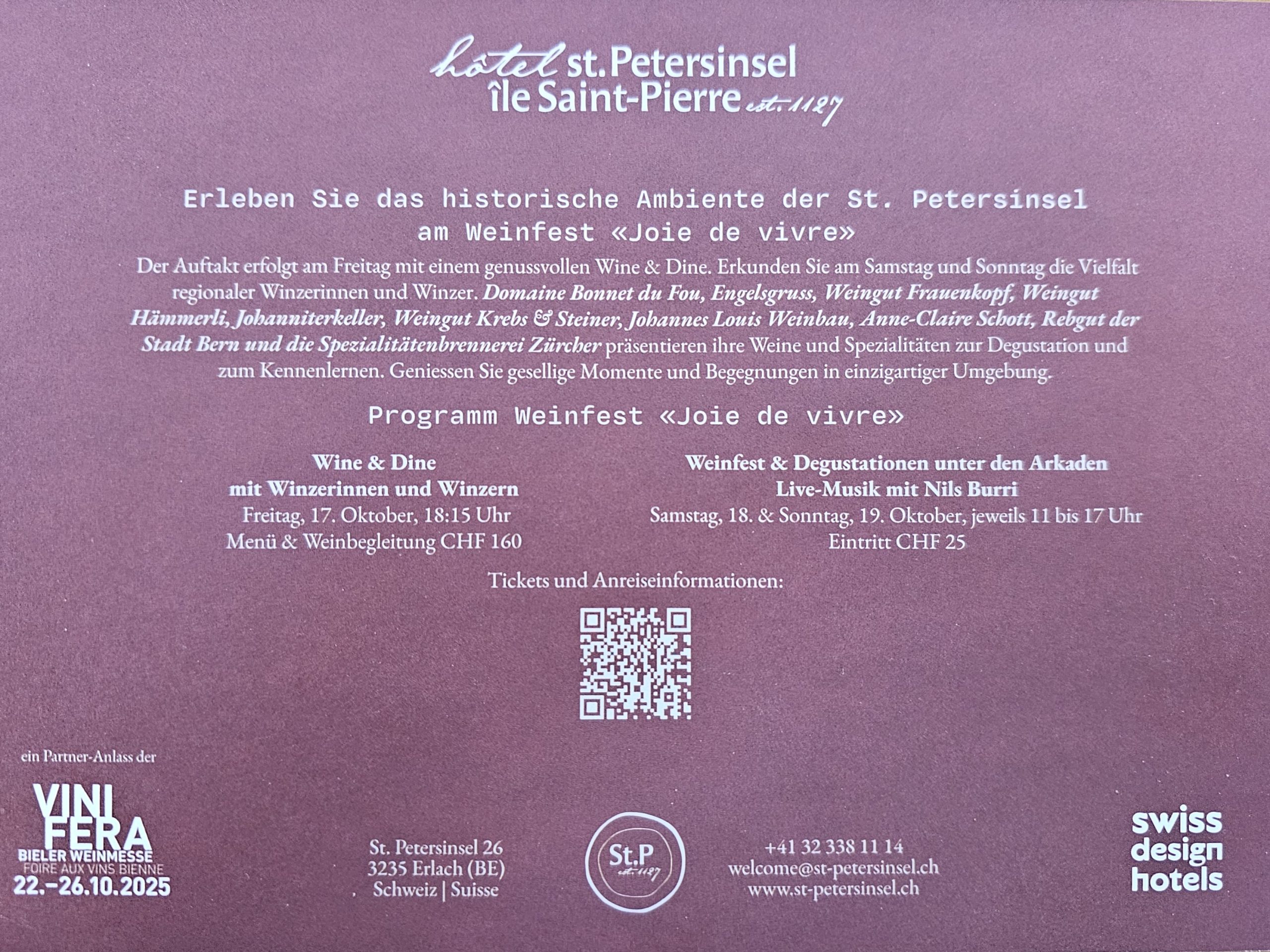 - Rebbaumuseum Hof Ligerz, Spielnachmittag Kreuzsaal, Weinfest St.Petersinsel